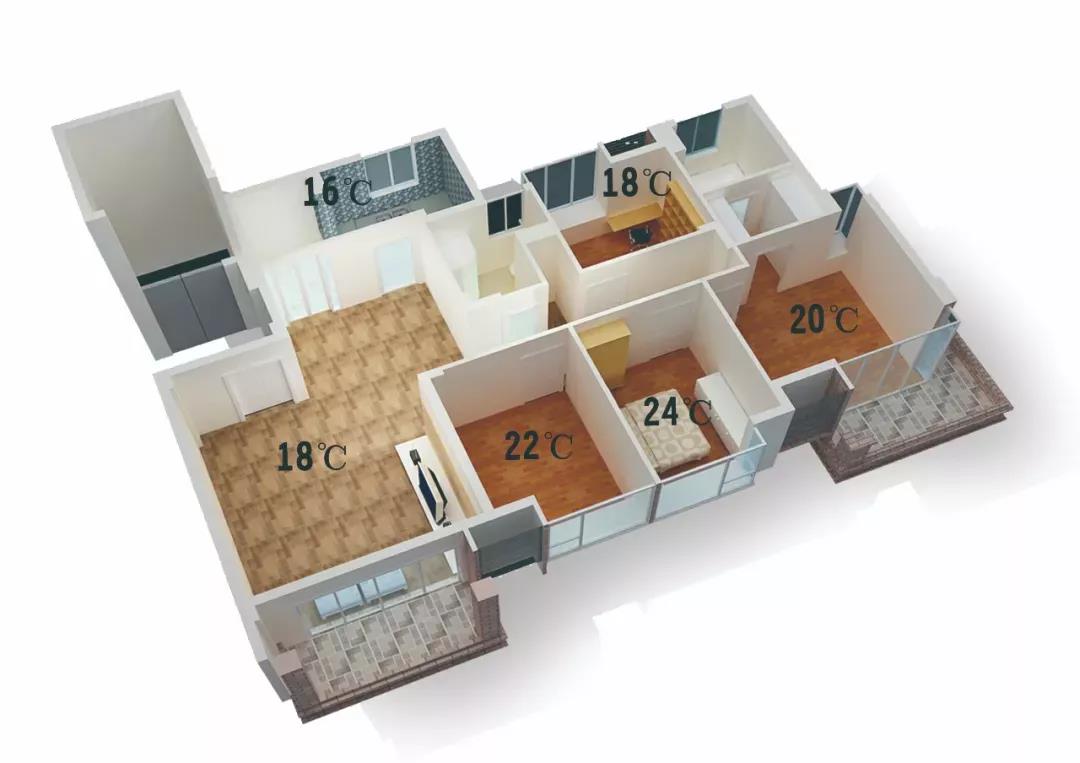 每個(gè)房間溫度可以根據(jù)使用需求不同獨(dú)立設(shè)置、獨(dú)立控制,走到哪開(kāi)到哪,離開(kāi)哪關(guān)掉哪,充分節(jié)約能源和運(yùn)行費(fèi)用,避免了不必要的浪費(fèi)。比如把無(wú)人居住的房間可設(shè)置為低溫運(yùn)行狀態(tài),如果有人居住時(shí)再把室內(nèi)溫度調(diào)節(jié)到舒適溫度。