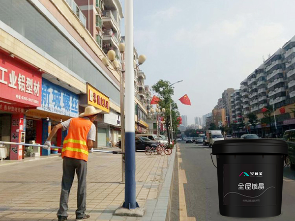 在處理好保護物的不干膠痕或清除灰塵后,在保護物表面分別滾涂底漆以及鍍晶膜,前后共兩遍工序不僅施工過程快、效率高,而且對施工技術要求不太高,一條街道市政清潔工作幾小時即可完成。