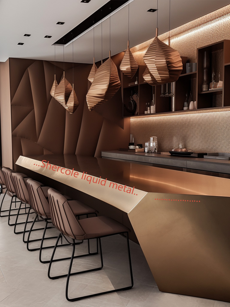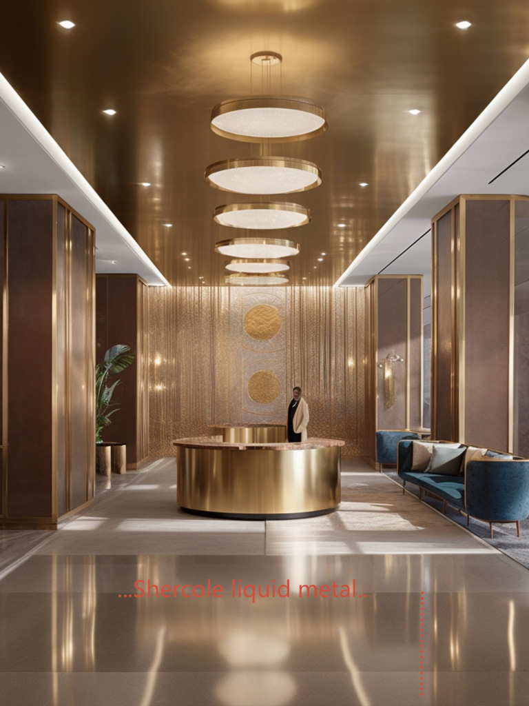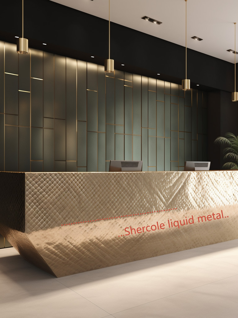 液態(tài)金屬能應(yīng)用到酒店哪方面裝飾?液態(tài)金屬可以用于大堂的裝飾元素,如立柱、墻面、天花板等,為酒店營造豪華和現(xiàn)代感;還包括接待臺和吧臺、燈具和照明裝飾、家具裝飾、藝術(shù)品和雕塑,為酒店創(chuàng)造出獨(dú)特的氛圍和視覺效果。